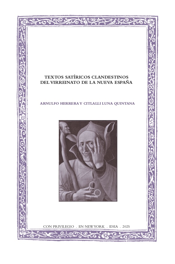 Arnulfo Herrera y Citlalli Luna Quintana, Textos satíricos clandestinos del Virreinato de la Nueva España, New York, IDEA, 2025.
